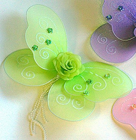 These stunning small fairy wings are the perfect accessory to any fairy or pixie costume. The back is embellished with a beautiful rose, sequin flowers and sparkling swirls.